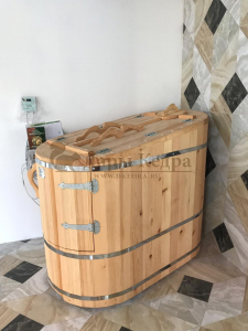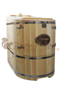 Кедровая фитобочка полулежачая - это мини парная, которую можно использовать не только в спа-салонах, но и дома. Модель этой бочки наиболее комфортна, так как позволяет принимать процедуры полулежа. Толщина стенок составляет 40-45 мм, что позволяет увеличить срок службы изделия. Фитобочка оборудована откидными створками, дверцей и отверстием для головы. Во время парения человек находится внутри кедровой бочки, а голова снаружи. Благодаря этому исключается возможность перегрева. Подлокотники, подспинник из кедра и внутренние ручки делают эксплуатацию фитобочки более удобной.